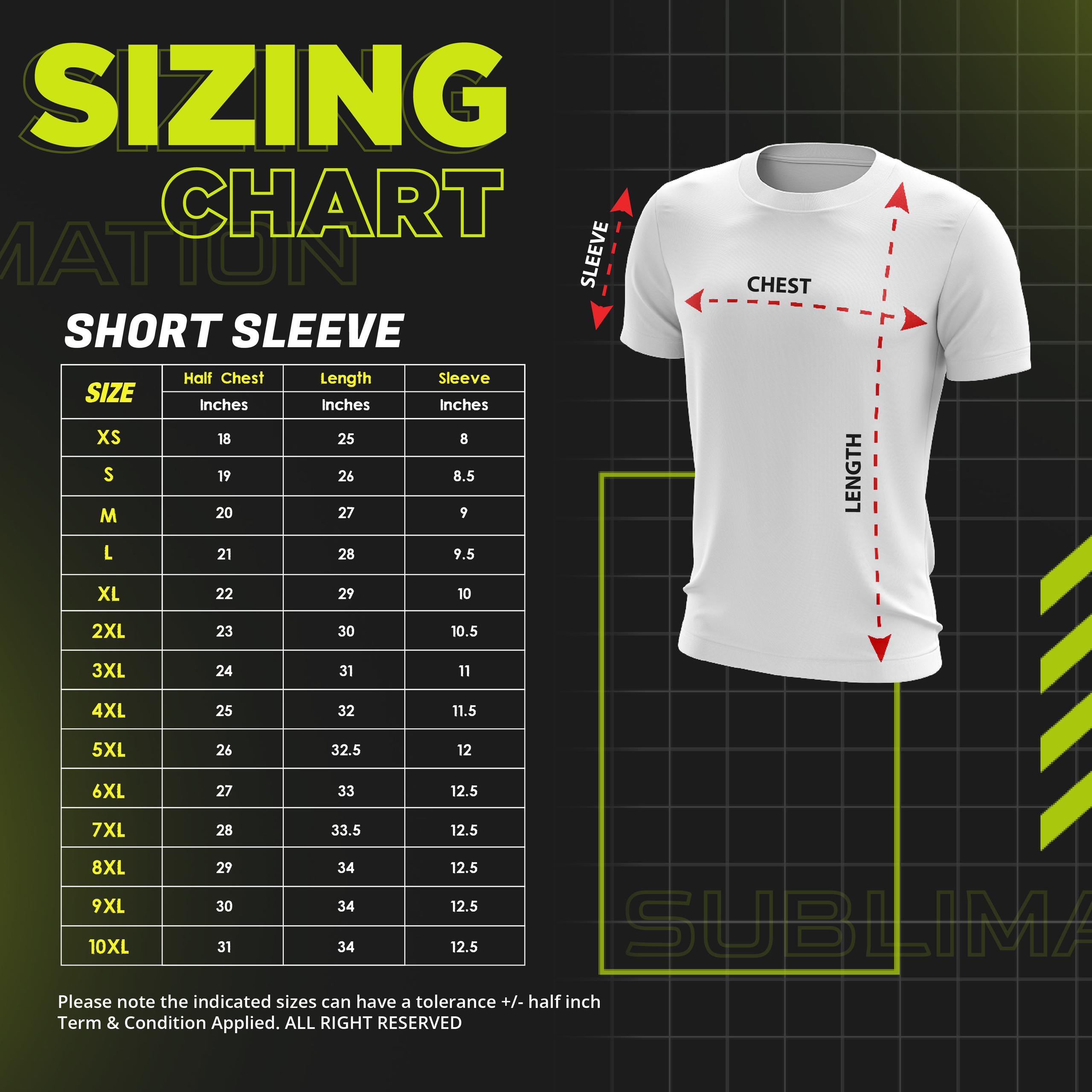XS, S, M, L, XL, 2XL, 3XL, 4XL, 5XL, 6XL, 7XL, 8XL, 9XL, 10XL, KID 22, KID 24, KID 26, KID 28, KID 30, KID 32